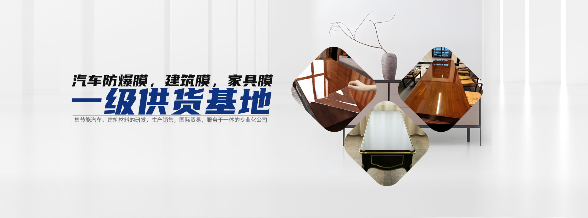 蘇州恒萃新型材料科技有限公司是中國從事節能汽車、建筑材料的研發,生產銷售,國際貿易,服務于一體的專業化公司,是目前國內汽車防爆膜,建筑膜,家具膜一級供貨基地,規模大,品質硬,顏色齊,價格低。